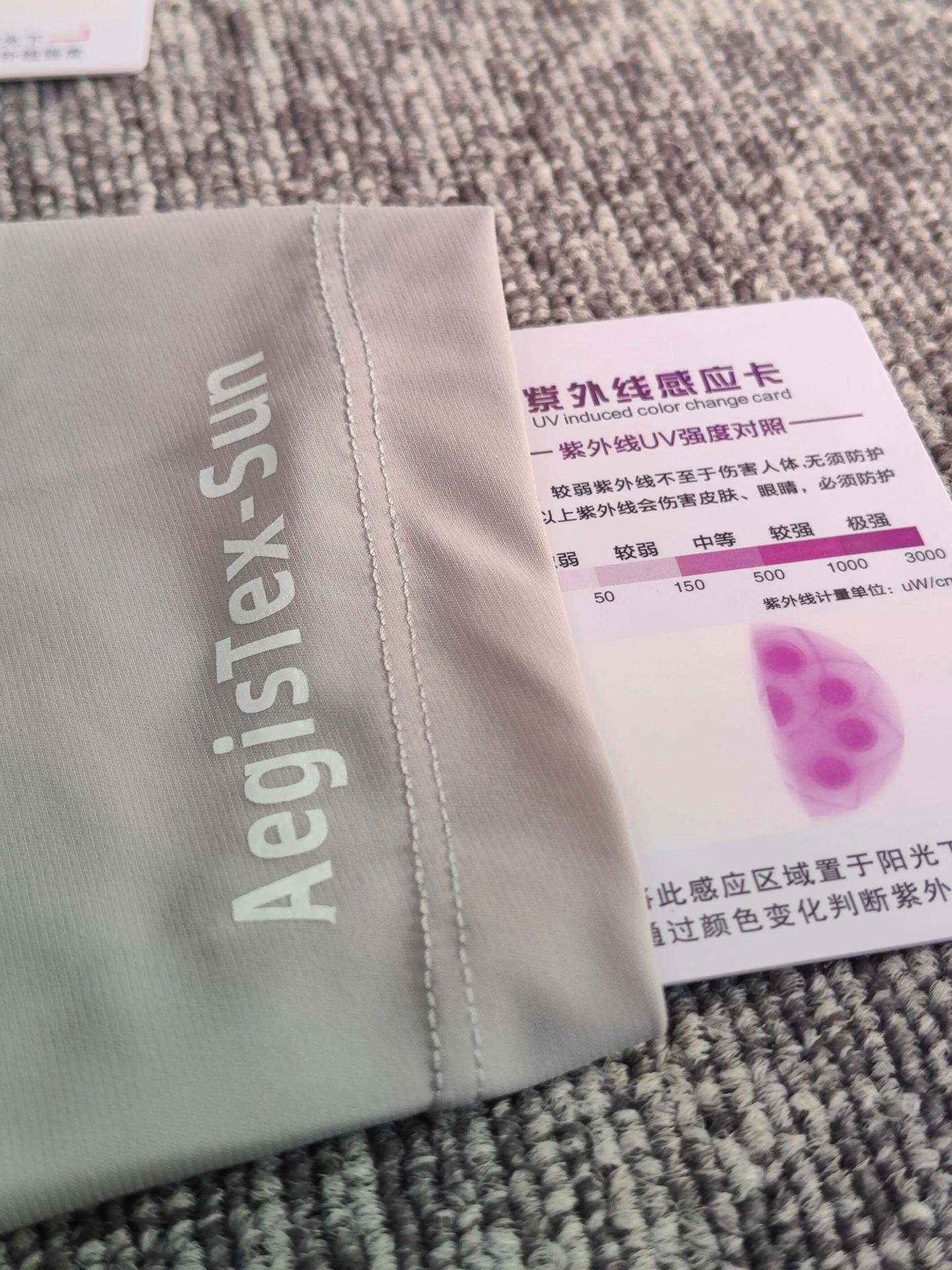 结果非常理想,露在外面的半张卡已经紫得发黑,而被衣服盖住的部分一点变色的痕迹都没有。这就是它家自研 AegisTex 平衡防护面料的实力,用的是仿生复合原纱,把防晒因子直接织进纤维分子里,菱形交织的盾形织法,就像给面料织了无数个微型遮阳伞,全波段紫外线都能牢牢挡住,连布料缝隙都做了加密处理,紫外线根本无处可入侵。