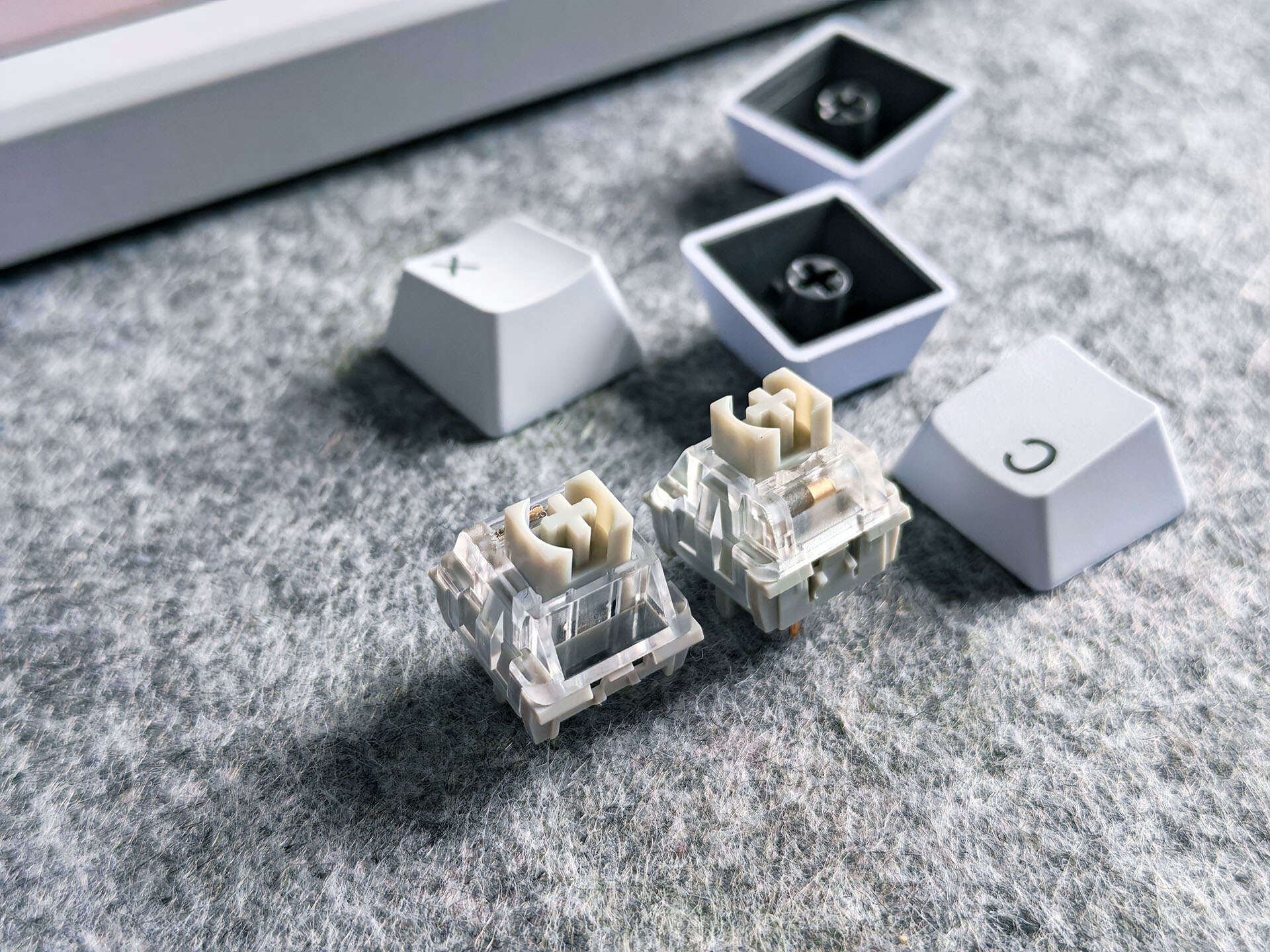 键盘目前搭载了凯华定制的快银轴,我用着就挺舒服,它是雷柏与凯华共同研发的成果,是一款线性轴,触发压力为35±10gf,键程为1.2±0.4mm,总键程为3.4±0.4mm,可以说是专为游戏和快速输入而设计的。