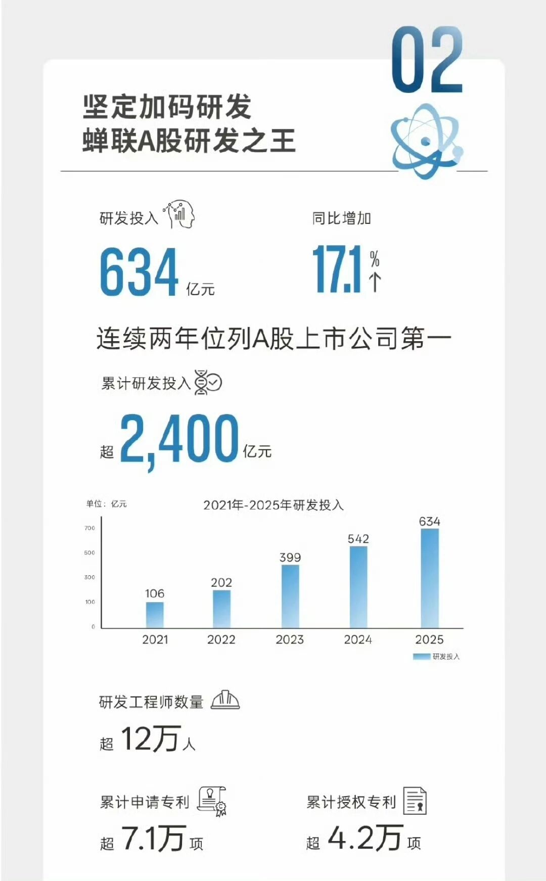 最让我触动的,不是营收8040亿、净利润326亿这些亮眼数字,而是研发投入634亿,接近利润的两倍的研发成本,正是这种不计成本的投入,让比亚迪在高端技术上全面开花。国内纳税533亿,是利润的1.6倍,既见实力,更显龙头担当。