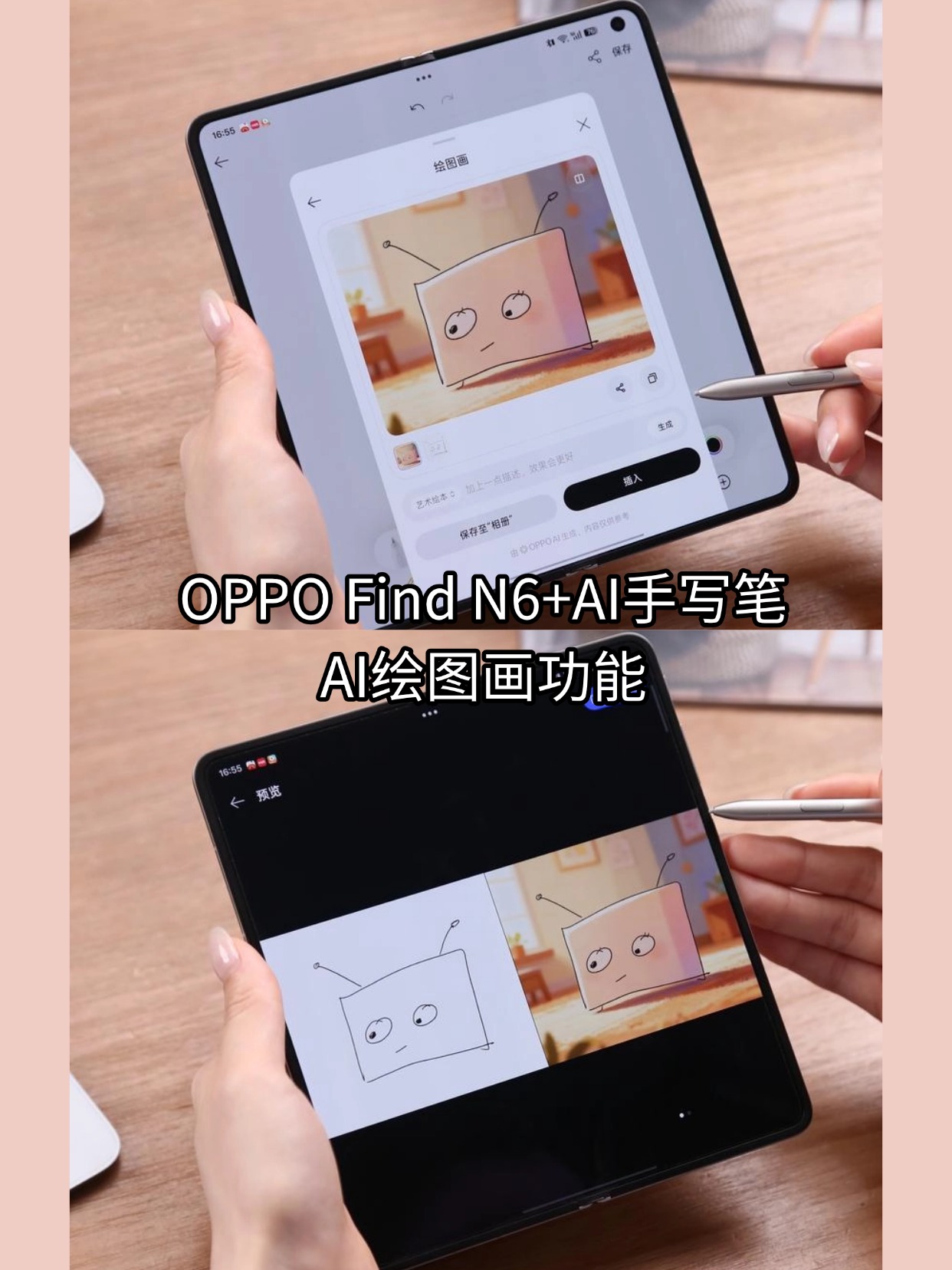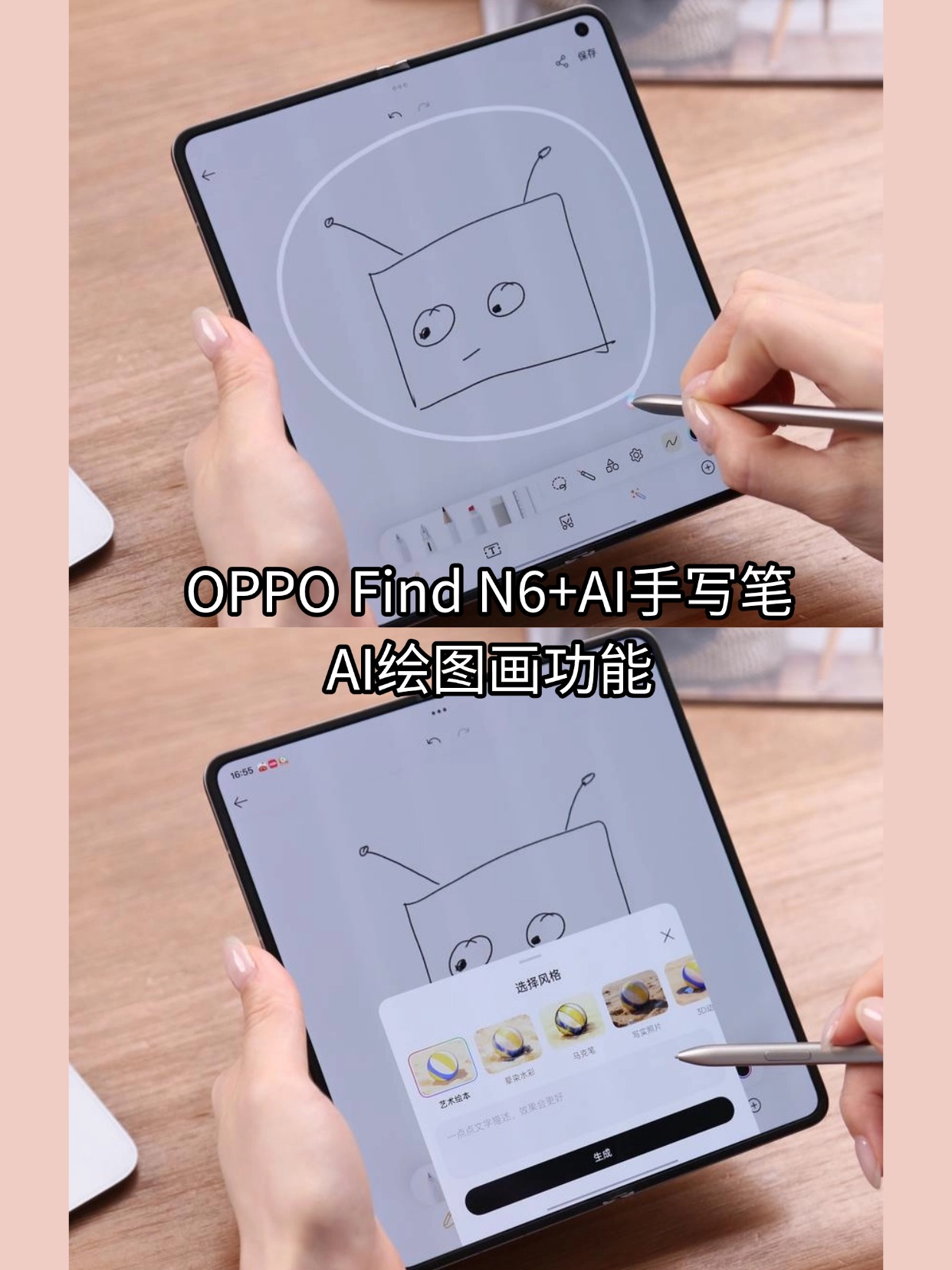 而除开第三方应用适配,针对大屏体验提升方面OPPO Find N6更创新适配了AI手写笔,简单一圈一点草图秒变“大作”、精致图表,对于经常有绘画、制表需求的人来说,体验真的非常友好了~