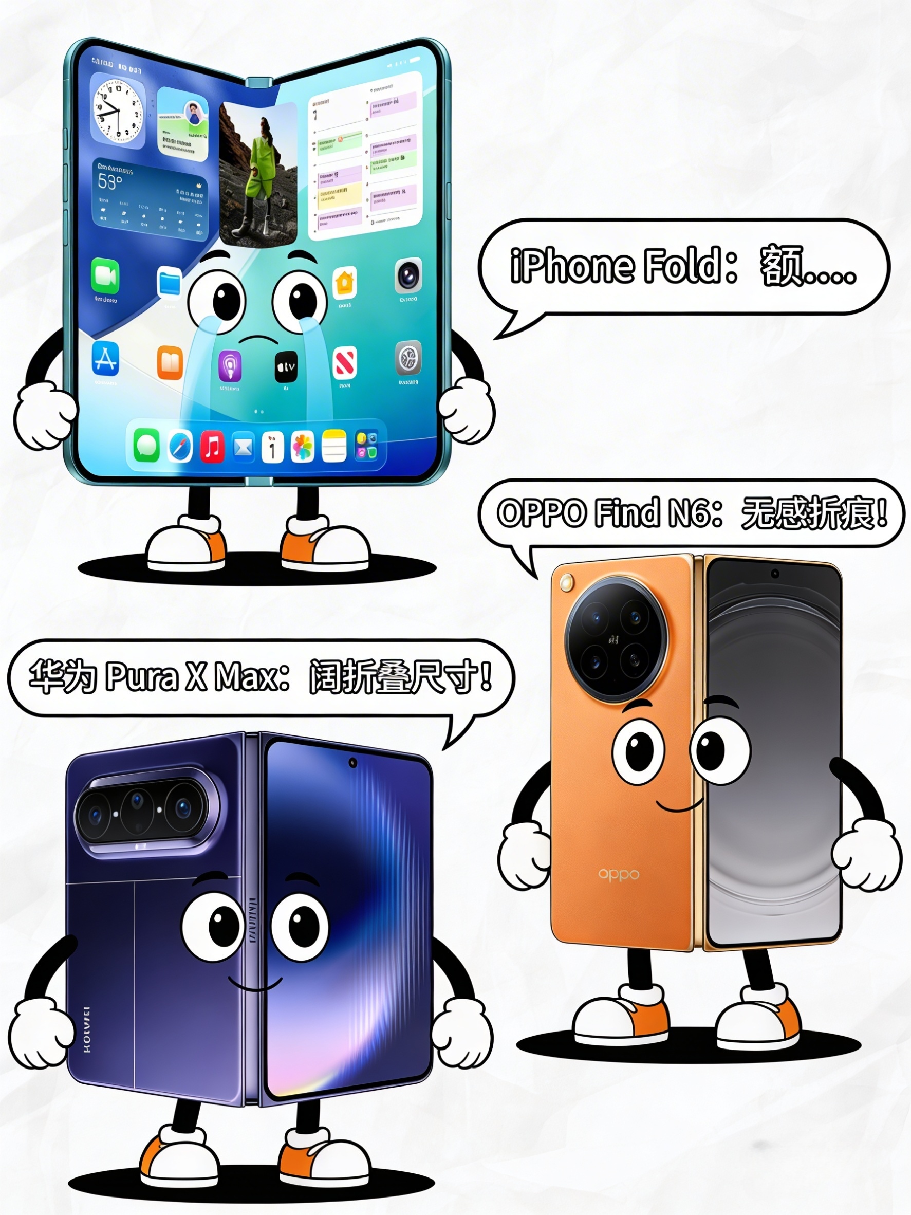 如果今年你也在蹲折叠屏,其实不用非等苹果,追求极致屏占比和新鲜体验可以关注华为Pura X Max;如果看重折痕控制和多用多任务,OPPO Find N6目前仍是标杆。关键是,国产折叠屏不仅技术跟上了,价格也相对更友好(网传iPhoneFold接近2W),咱就是说这次国产手机确实走在了行业前头了!#折叠屏手机 #折叠旗舰 #iPhone Fold #华为PuraXMax #OPPOFindN6 #数码种草 #手机评测 #国产手机崛起 #大屏体验
