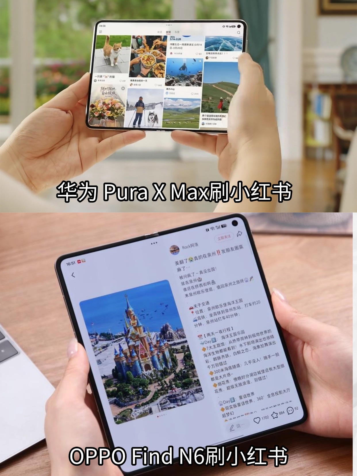 你说系统体验这块吧,上面提到的两款都适配的很到位。像华为Pura X Max的预热视频中就已经明示提前适配好了小红书;OPPO Find N6这类大折叠屏更直观了,刷小红书一屏能显示笔记所有信息,观感一下子就开阔了,甚至还能同时支持最多四个应用小窗前置桌面,多任务处理时别提多高效了。