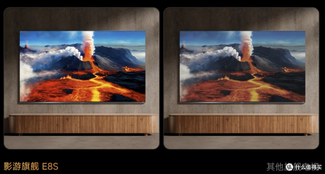 E8S机身厚度仅44mm,在搭载如此复杂的RGB背光系统、9360分区、帝瓦雷音响的情况下,依然做到了极致轻薄,最薄处可至8mm,实现极限贴墙安装,轻松融入多种家装风格。另外,E8S对标帝瓦雷3万元级的 Phantom 音响进行原声复刻,4.2.2 声道相当于随机附赠了一台国际顶尖大牌的 Hi-Fi 音响。这不是营销话术,而是实实在在的声学工程合作成果。