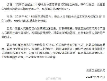 你以为这就完了?哪能啊,医院回复后的第二天,也就是4月14日,荣县卫健部门及荣县人民医院相关负责人还前往谢先生家当面道歉,并表示以后谢先生来肯定免费。