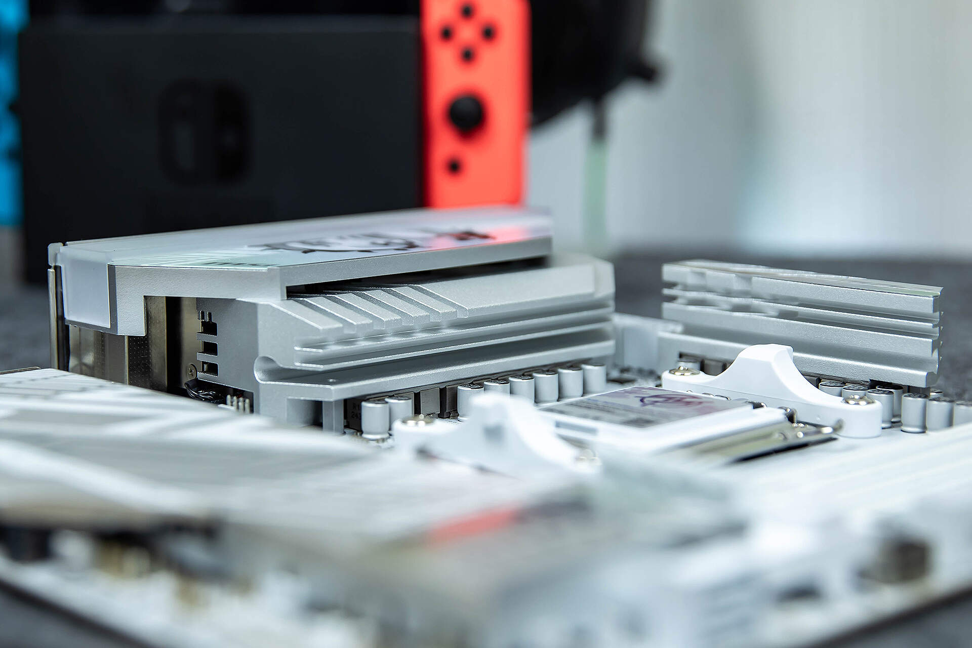 拆下M.2冰霜铠甲,可以看到3条PCIe M.2插槽,上方M2_1、M2_2直连CPU,支持PCIe 5.0 x4模式;M2_3以及主板背面的M2_4连接芯片组,支持PCIe 4.0 x4模式。
