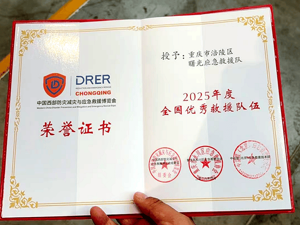 “这份荣誉是认可,更是沉甸甸的责任。”救援队相关负责人表示,未来,涪陵区曙光应急救援队将以此次获奖为契机,持续发扬公益救援精神,不断锤炼救援本领、完善救援机制,提升应急处置和服务保障能力,深度融入全市应急救援体系,继续坚守守护群众生命财产安全的第一线,为建设平安涪陵、筑牢区域安全防线贡献更多“曙光力量”。(陈孝波 余秋朋 文/图)