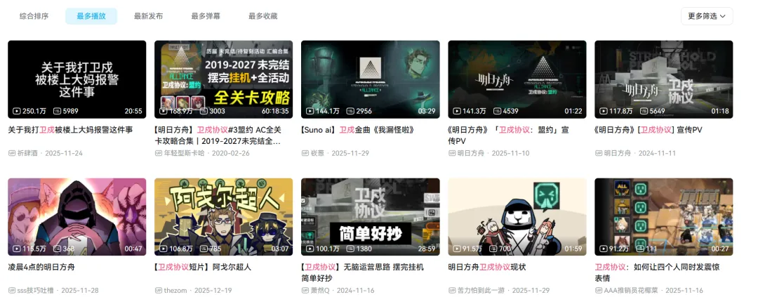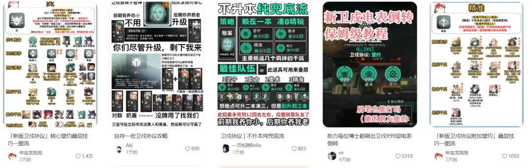 一个游戏内的副玩法是否真正深入人心,看它产生了多少“梗”就知道了。从这个角度来说,“卫戍协议”无疑已经取得了阶段性的胜利。在B站、小红书、抖音、微博等平台上,相关的二创内容层出不穷。创作者们用各种或夸张或有趣的剪辑与内容,记录着自己在“卫戍协议”中的喜怒哀乐 。