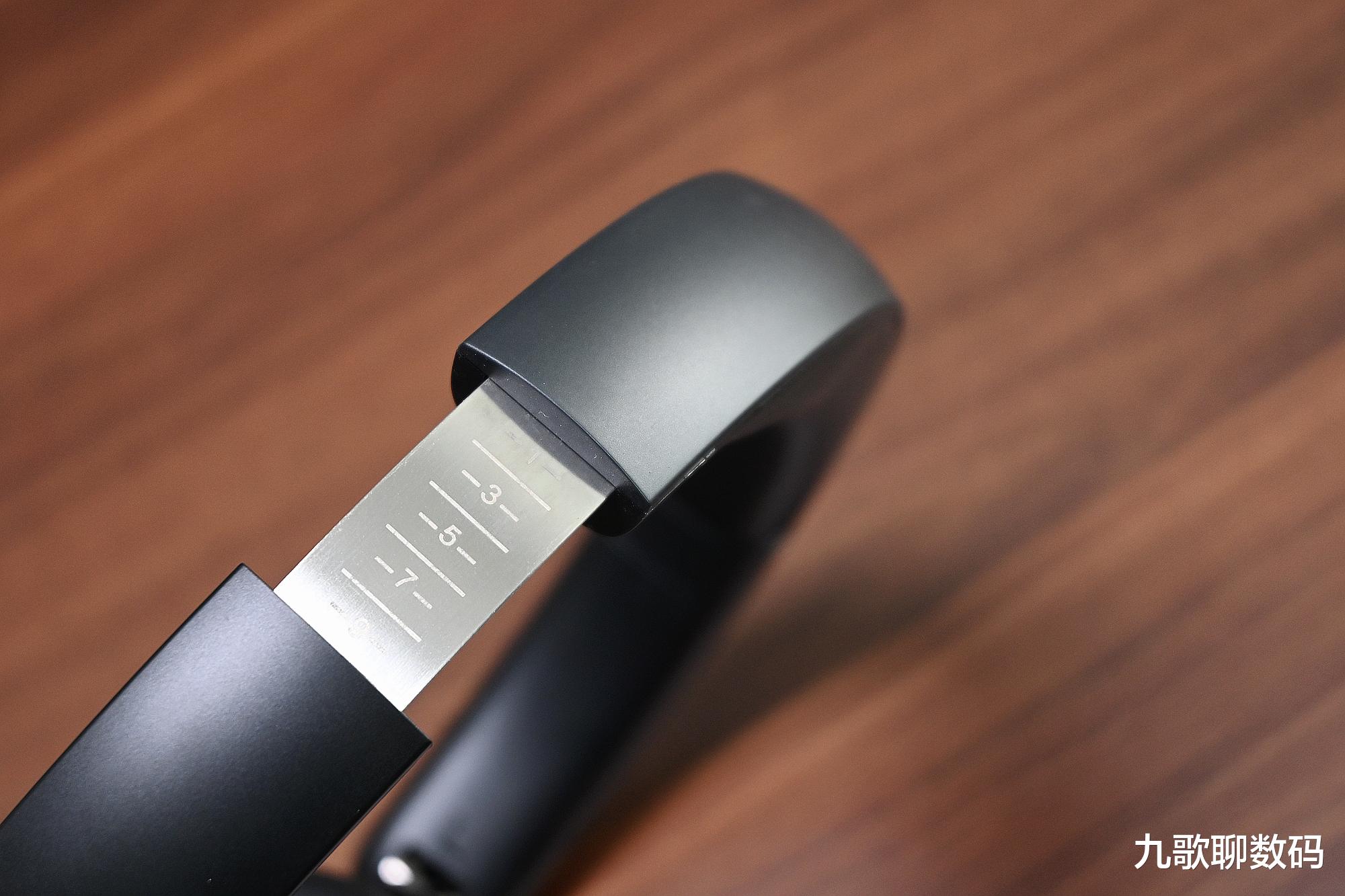 耳机伸缩架为钢制,相较塑质更能为抗压耐用。带刻度的分段卡位使其在伸缩调节时会有了色的阻尼感,不会有过松或过紧的问题。耳机并没有夹头感,佩戴亦足够舒适、牢靠。