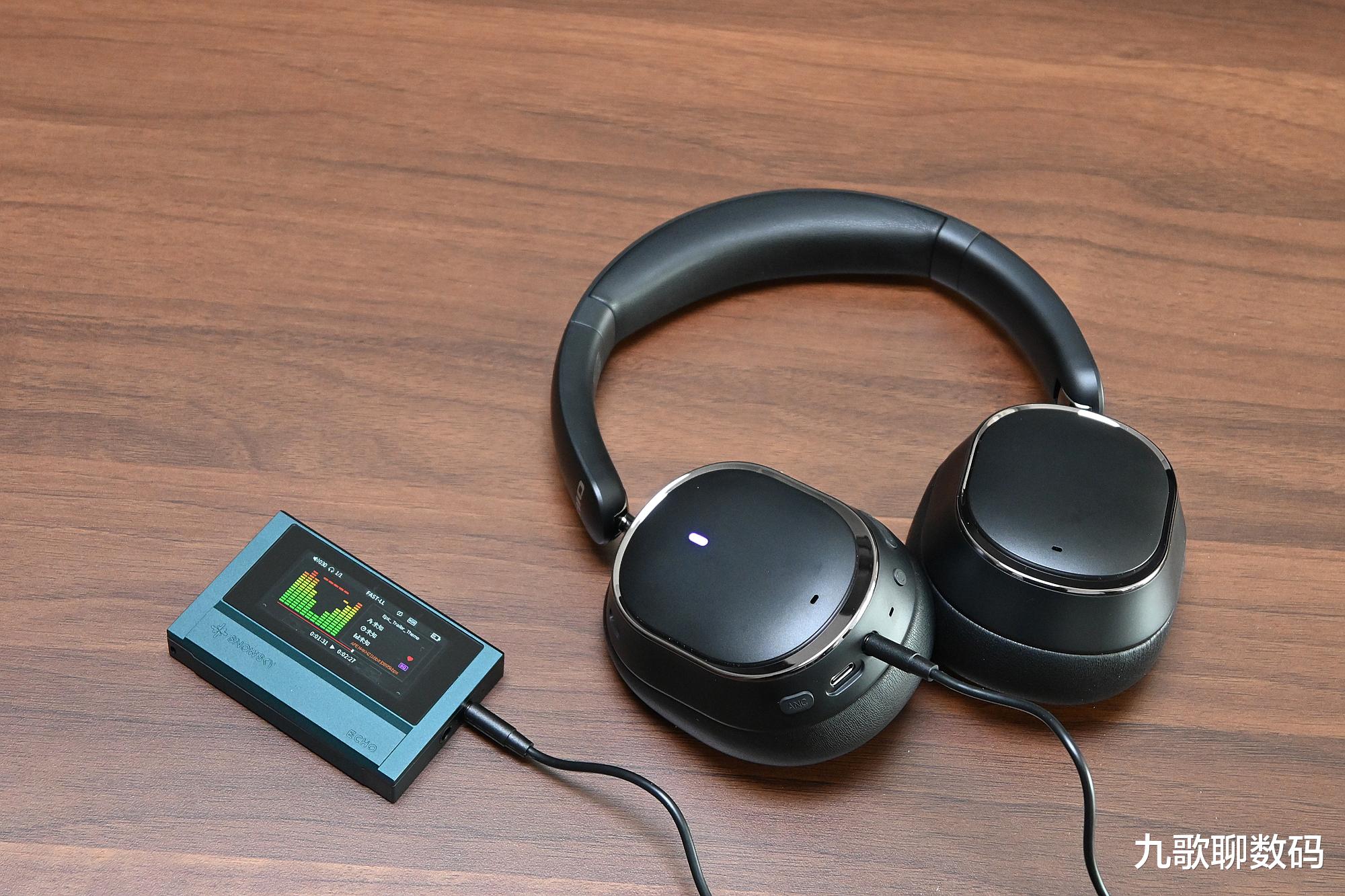 按键和接口都集中分布在了右耳罩上,方便单手操控。按键手感总体偏软,并不松垮,整体体验还是不错的。续航方面,其内置的电池容量为600mAh,在降噪开启的状态下为45个小时,而关闭后则能达到75个小时。以每天听歌通勤使用6小时计,即便降噪常开也能用上一周多。而且耳机还集成了3.5mm耳机插孔,没电时可通过附带的耳机线来有线使用,这点无疑非常便利。值得一提的是,EH13的有线连接模式跟蓝牙模式都经过EQ,这也就是说,有线与蓝牙的听感是基本一致的,并不会有明显出入。