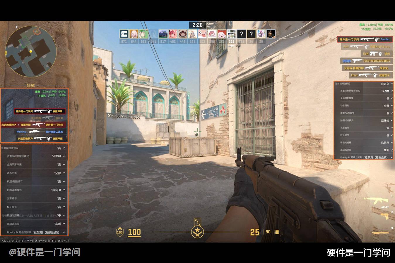 最后看看游戏体验,年龄大了,玩不来那么多3A,我一般玩CS2比较多,或者暗黑破坏神3。显示器是卓威240Hz电竞显示器,先采用预设的高配置,室外60帧出头,室内50多帧,多人战斗激烈时也有过47帧,给我个人的感受是玩是能玩,但总感觉有点不太跟手,特别是帧数在50左右时。期间,我将功率改成85W,显存设置成8G,帧数只提升了几帧,效果不太明显。也采用了AMD的游戏优化设置,帧数高时能到80帧,但依旧有点卡顿。于是我参考其他网友的策略,依旧采用65W功率,显存设置为Auto,去掉AMD优化设置,将多重采样抗锯齿模式设置为4X MSAA,其他全部设置为低,效果很明细,平均帧数能到85左右了,室外有时能过100帧了,而且流畅度没有问题了。