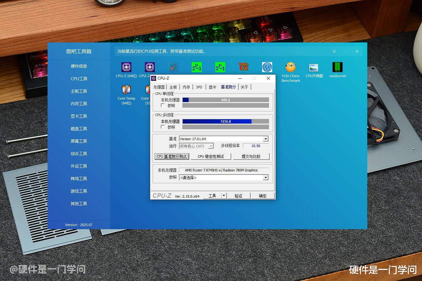 跑分方面,网上已经有很多大佬发布了不同功耗的详细测试,我就只发一下默认65W的吧。CPU基准跑分测试,单线程得分685.2,多线程得分7235.8,感觉比其他人高一点,有些人多线程只跑了7100多分。