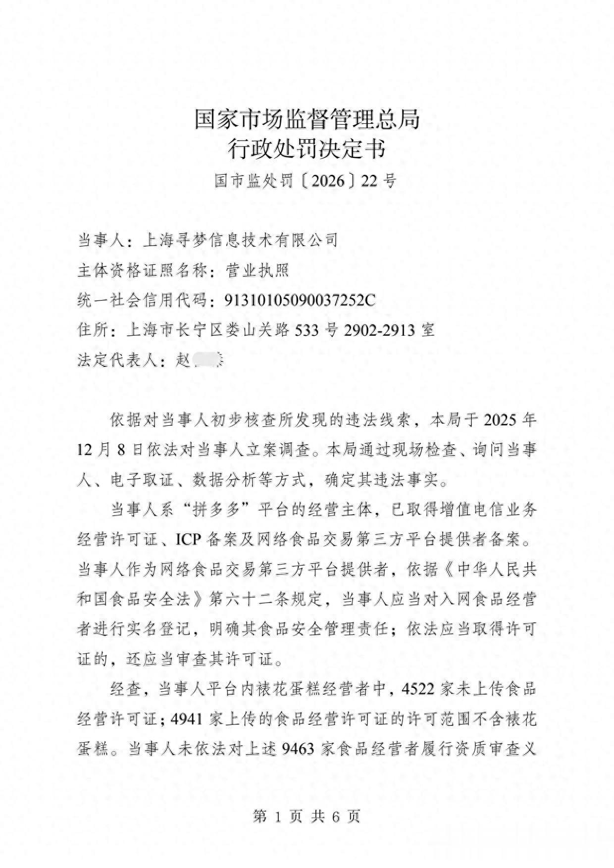 电商食安“最严罚单”落地,拼多多因多项违规被罚15.22亿!