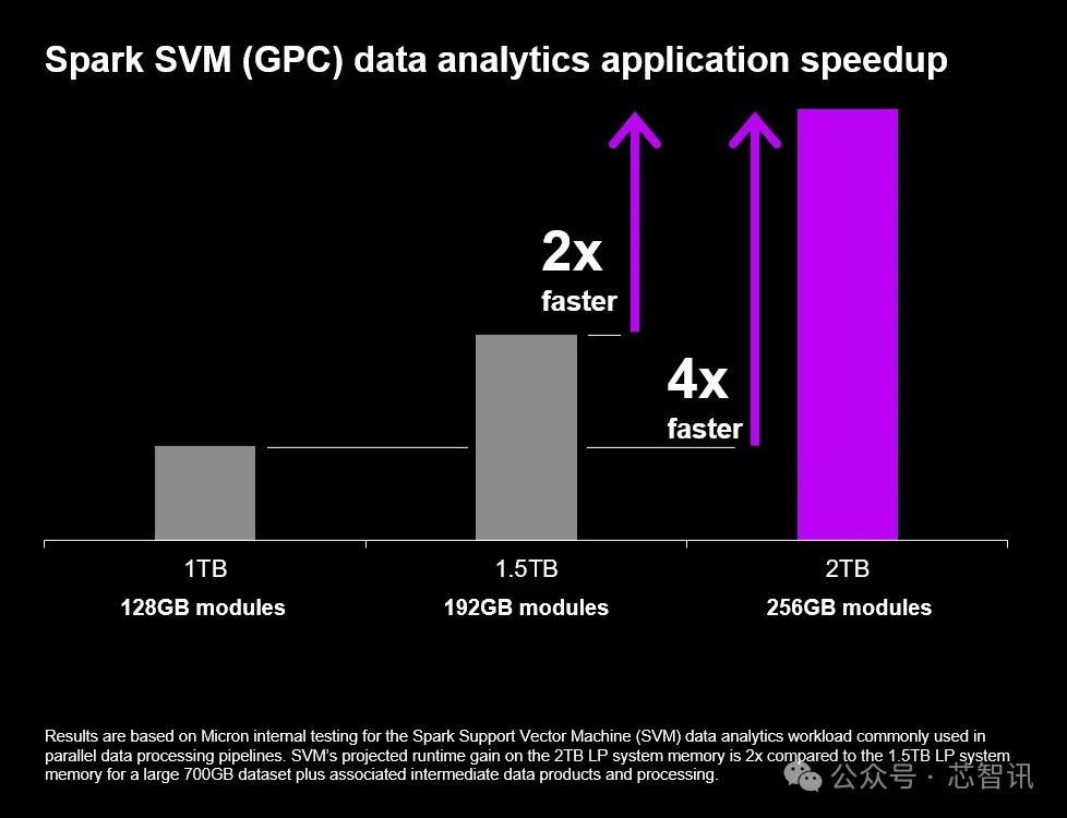 △美光内部测试显示,使用256GB LPDRAM模块的Spark SVM的通用服务器可以实现高达4倍的加速。