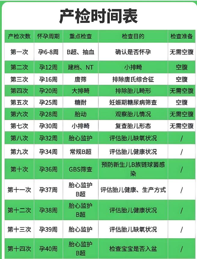 女性在怀孕之后就要按期去做产检,一般从第一次检查到孩子生产,差不多需要14次的产检,但是,有些特殊情况的,产检的次数可能稍微多几次。