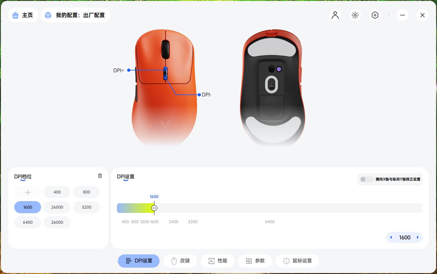 A Hub驱动界面简洁无广,可直接调节DPI、回报率,鼠标侧键可自定义设置,办公时可提升操作效率。