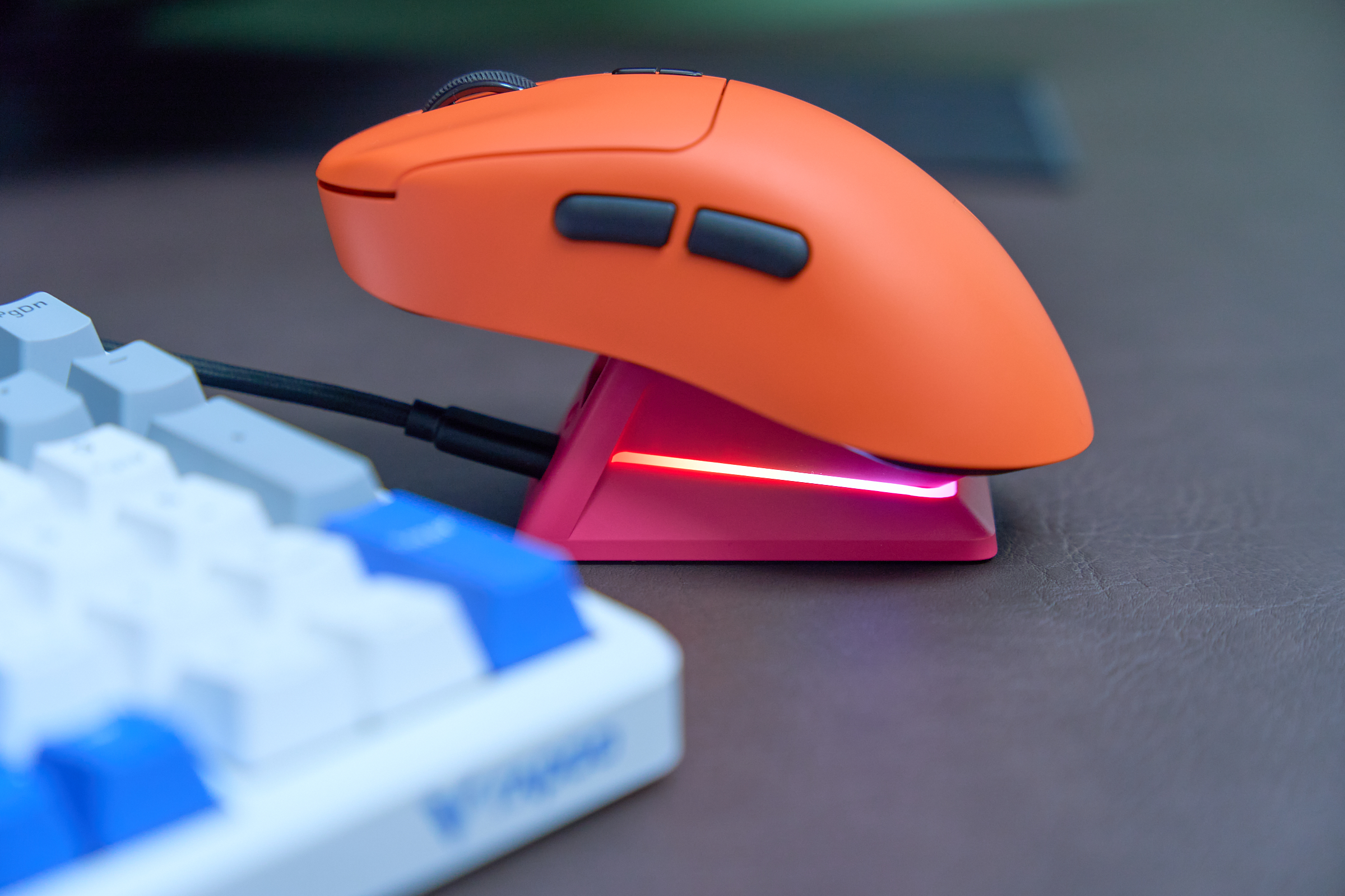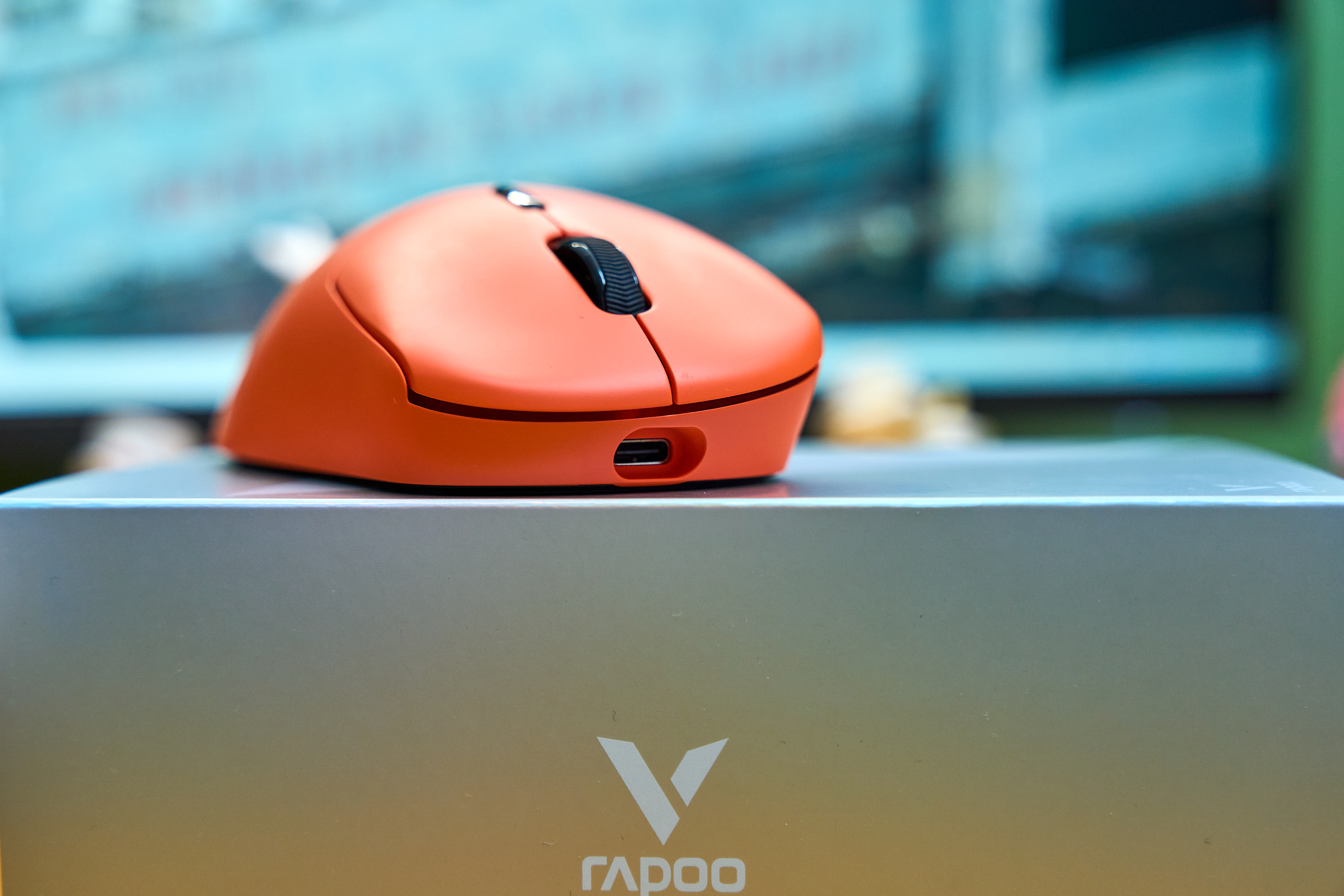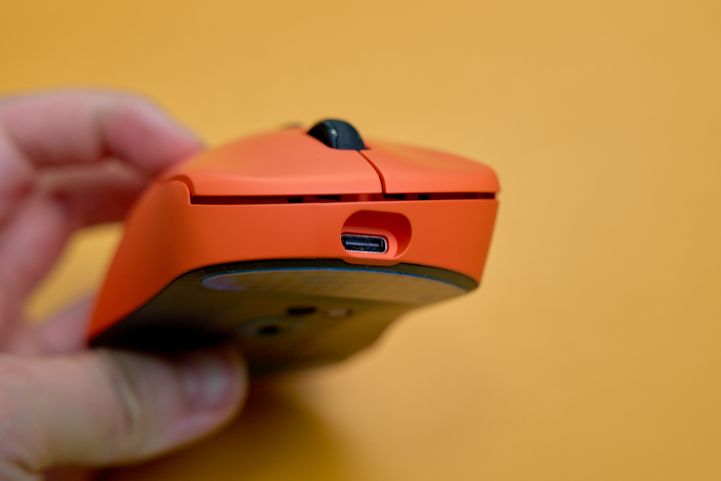 鼠标采用橙色哑光设计,外壳无亮面塑料感。