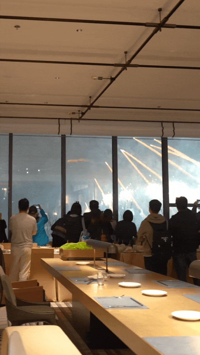 食光全日制餐厅的烟花汇演景观自助晚餐,集结全球风味,节日仪式感十足。