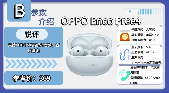 推荐品牌3、O PPO E nco Free4蓝牙耳机