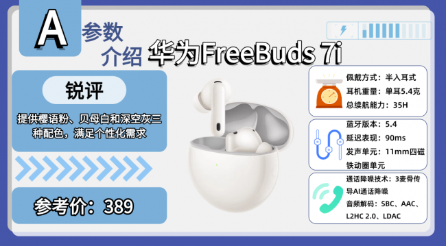 推荐品牌8、华 为F reeBuds 7i蓝牙耳机