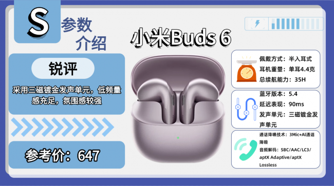推荐品牌4、小 米B uds 6蓝牙耳机