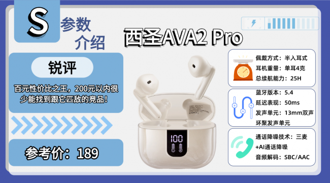 推荐品牌1、西圣AVA2 Pro蓝牙耳机