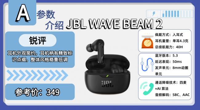 推荐品牌9、J BL W AVE BEAM 2蓝牙耳机
