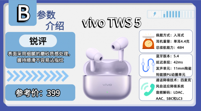 推荐品牌2、V ivo T WS 5蓝牙耳机