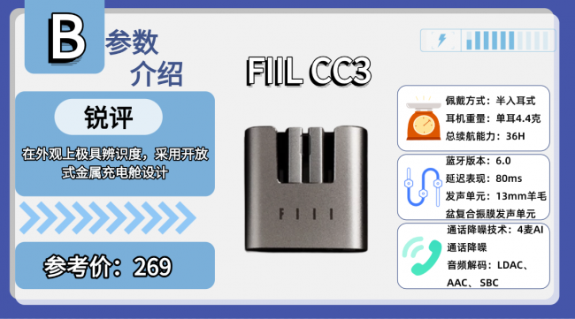 ✭音质表现偏向耐听风格,8mm动圈单元提供充足低频和自然人声,高频延展通透但细节略有保留,整体解析力适中,流行和民谣类曲目体验较佳。支持蓝牙5.3,连接稳定性不错。续航方面,单次使用加充电仓可达约40小时,并支持快充功能,10分钟充电可听3小时左右。长时间高音量使用时,高频部分细节稍显不足,但日常通勤和休闲听歌完全够用。
