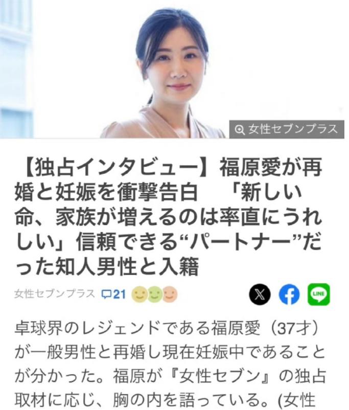 最近日本乒乓球名将福原爱又成了热议话题,37 岁的她通过日本媒体正式宣布,已经再婚而且怀了第三胎,现在的日子过得特别舒心。