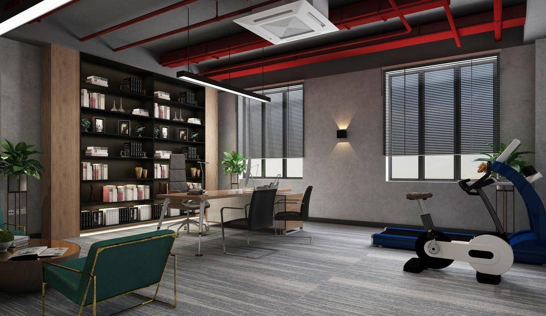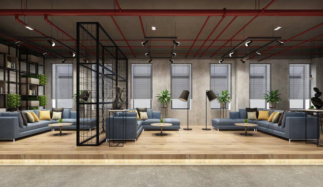 高挑的天花板上安装着裸露的灯具,明亮的灯光与空间中的阴影形成鲜明对比,为整个空间增添了层次感和力量感。
