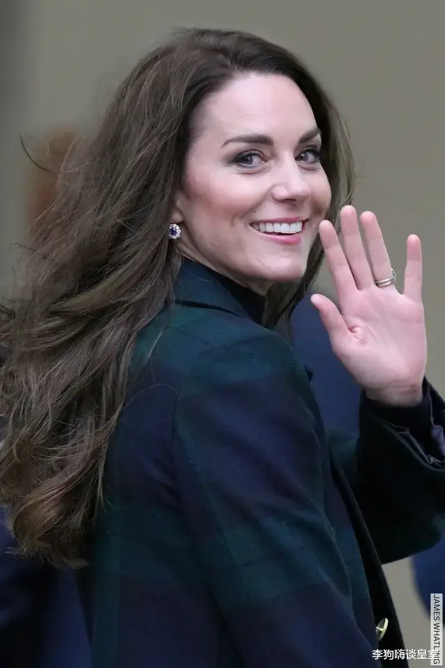 利落的 “黑卫士” 格纹造型2023 年的首个公开活动中,凯特以一件荷兰库珀(Holland Cooper)的蓝绿 “黑卫士” 格纹大衣开启了新一年: