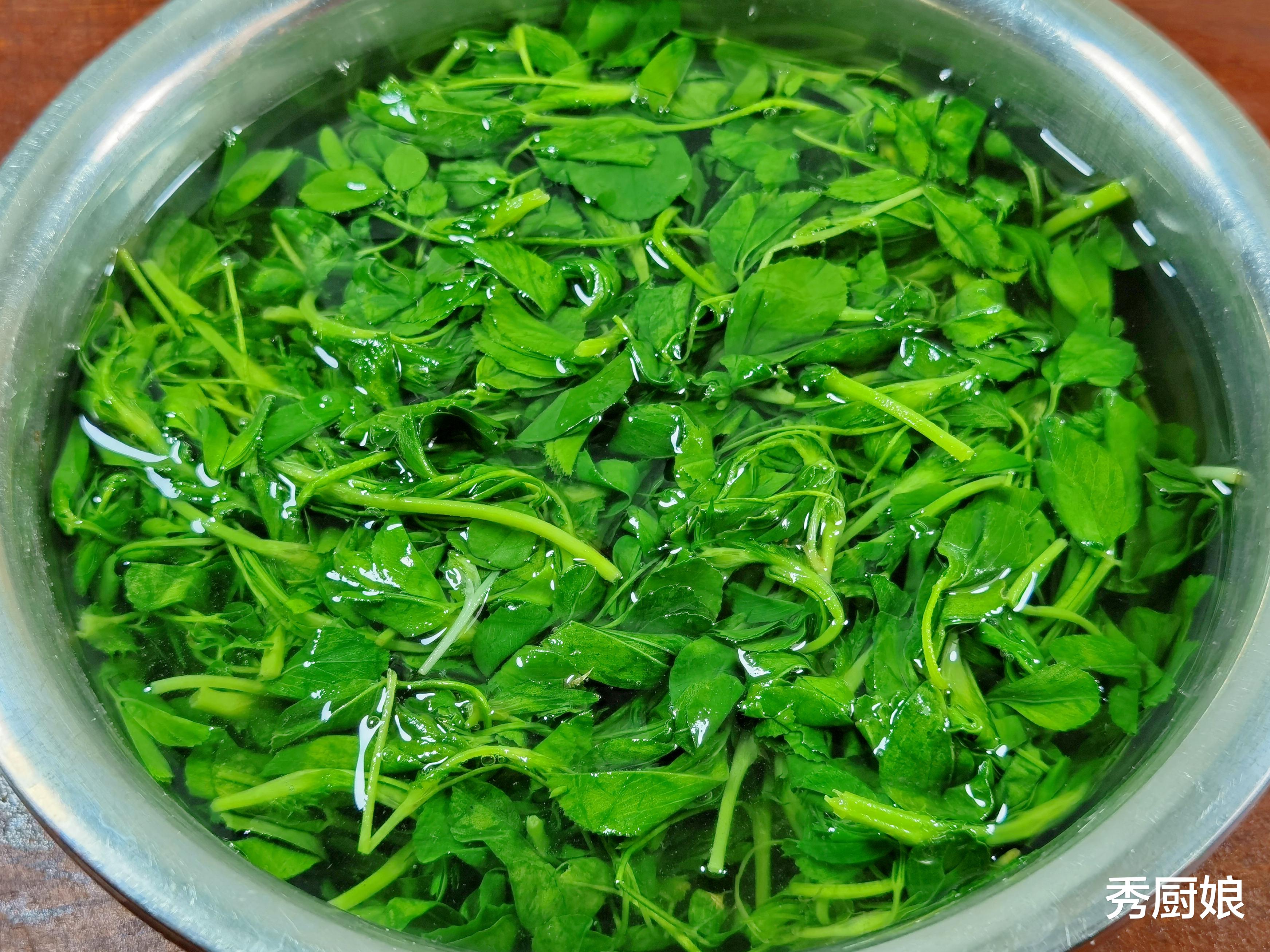 首先,把买回来的苜蓿菜捡一捡,去掉可能带的老根和黄叶。这活不急,慢慢来,也是一种享受。然后放到清水里多洗几遍,毕竟野地里长的,洗得干干净净吃着才放心。