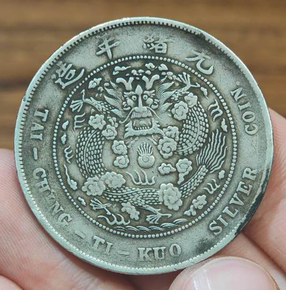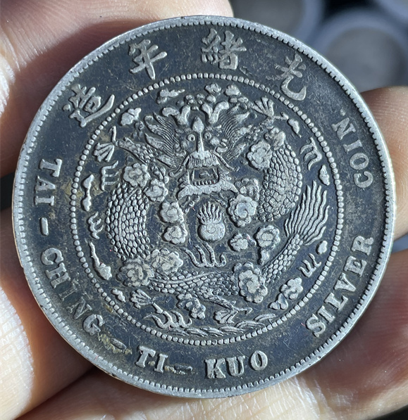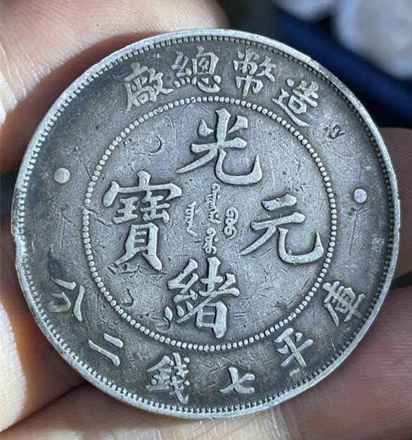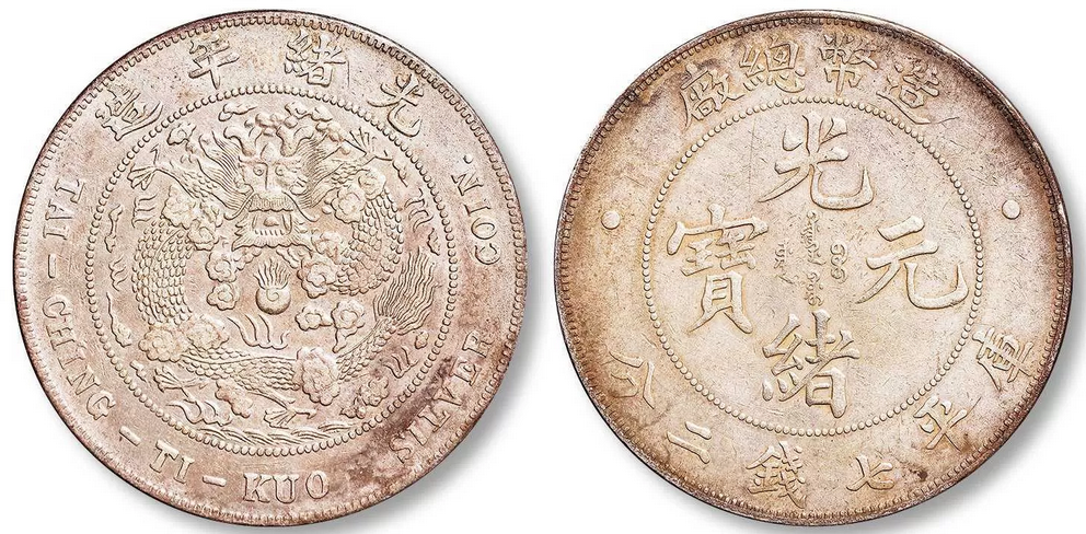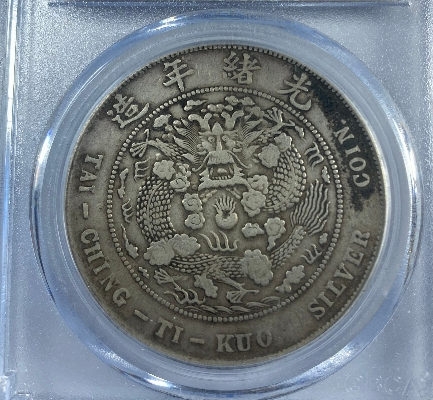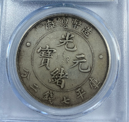 造币总厂光绪元宝,是其最具影响力的银元品类,铸行于光绪三十四年(1908年),也是光绪年间清朝中央政府正式制造发行的唯一一套银元。该系列银元形制规整,规格统一,完全遵循中央统一标准:直径约3.9厘米,重量约26.7克,含银量稳定在90%左右,铜含量10%,成色划一,远超当时各省自铸银币,这也是其能获得市场广泛认可的关键原因。设计上,该银元融合了传统皇家元素与近代货币风格,正面中央镌刻“光绪元宝”四字楷书,字体雄浑大气,笔画饱满有力,彰显皇家威严;上方环刻“造币总厂”四字,明确铸地与铸造机构,下方标注“库平七钱二分”,清晰界定面值与重量标准,两侧辅以对称的满文,体现满汉文化交融;背面中央为标准的部颁蟠龙图案,龙身比例协调,龙鳞采用叠压式雕刻技法,纹路清晰,栩栩如生,周围环绕英文“TAI-CHING-TI-KUO SILVER COIN”(大清帝国银币),既符合近代货币的国际化趋势,也对外宣示了中国的国号与货币主权,这也是造币总厂银元区别于地方银元的重要特征之一。此外,该系列还有一钱四分四厘、七分二厘两种辅币,与主币形成完整的币值体系,适配不同的交易场景。