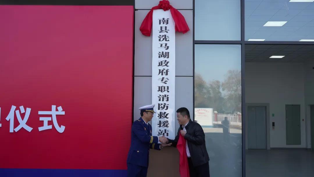 11月28日,南县洗马湖政府专职消防救援站举行揭牌仪式,标志着全县第四个消防救援站正式投入驻勤。