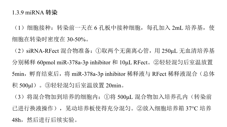 山西医科大学研究者在miR-378a-3p/SLC7A11在BaP引起神经细胞铁死亡中的机制研究中,使用RFect siRNA转染试剂分别将 siSLC7A11、miR-378a-3p inhibitor转染进入小鼠海马神经元细胞系HT22细胞中,经RT-qPCR检测发现:(1)siRNA处理后,与NC siSLC7A11 组相比,siSLC7A11组SLC7A11的mRNA表达水平降低了约52%;(2)miR-378a-3p inhibitor转染后,与NC组相比,miR-378a-3p inhibitor 组的miR-378a-3p 的表达水平降低约 70%!