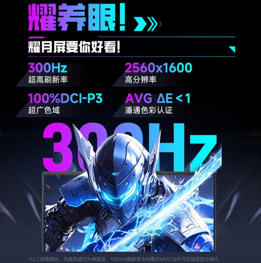 屏幕素质同样没有妥协。16英寸IPS面板,2560×1600分辨率搭配300Hz刷新率,500nits亮度加上100% DCI-P3色域覆盖,ΔE<1的色准表现意味着它既能满足电竞需求,也能胜任设计工作。经过X-Rite/Pantone校色系统调校并获彩通肤色认证,这台机器的屏幕在出厂时就已做好专业准备的姿态。
