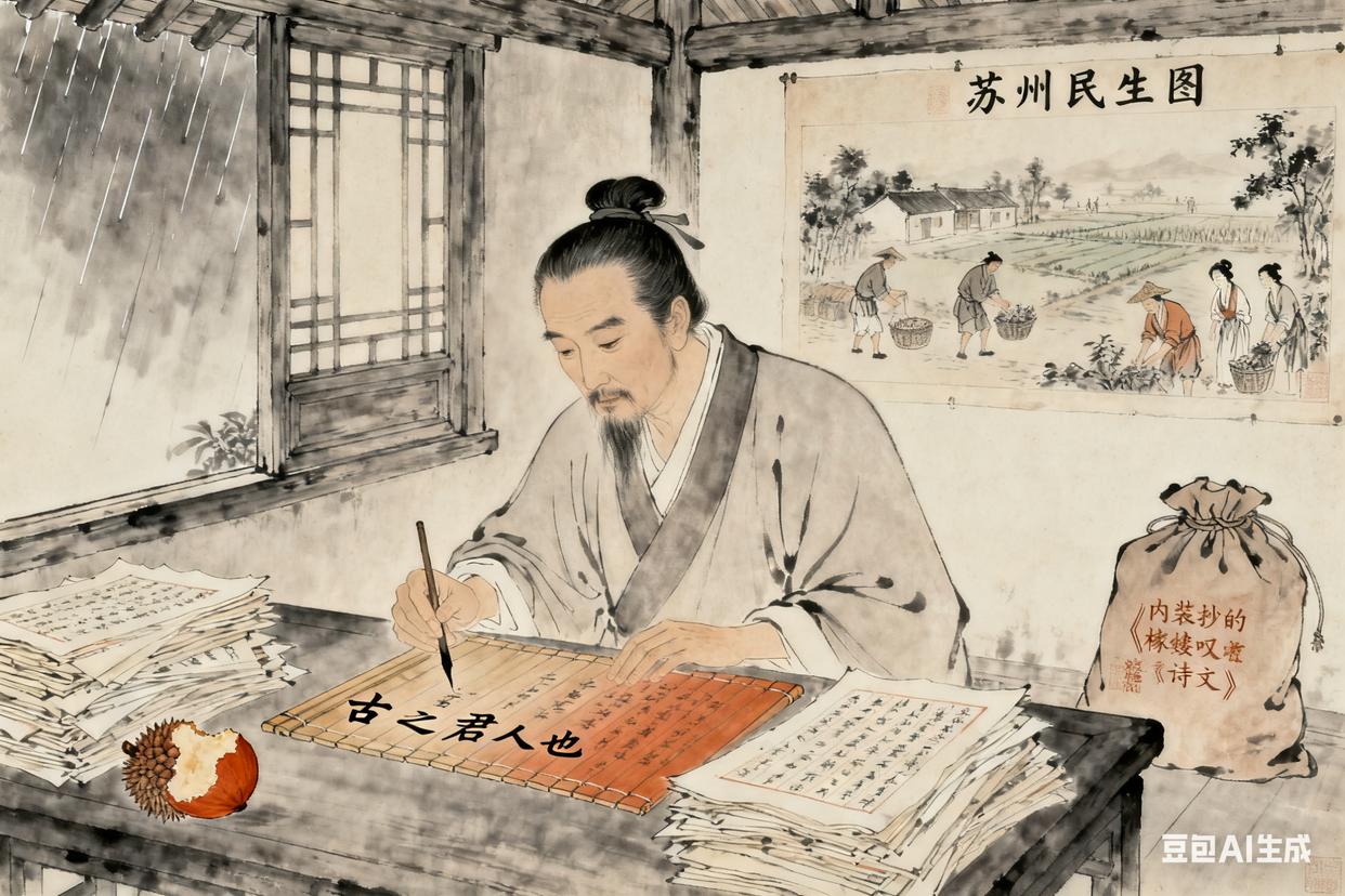 皮日休的一生,如一束穿透晚唐阴霾的惊雷,以诗文为刃,以民生为志,在腐朽的时代里,既用批判撕开了统治的疮疤,更以“从笔端到刀尖”的跨越,诠释了知识分子的担当。他字袭美,号鹿门子,襄阳(今湖北襄阳)人,出身寒微却“少攻文词,尤善箴铭、杂文,皆有所刺”(《唐才子传·皮日休传》)。咸通八年,他寒窗苦读十余年,终考中进士,本可如其他文人般“趋炎附势,谋得清闲”,却主动请缨赴苏州任从事——这座城是晚唐的“税赋重镇”,商税占全国三成,可底层百姓却“岁输百役,十室九空”:粮商勾结官吏垄断米价,一斗米竟值千钱;衙役强征农夫修河,不给分文报酬,逃亡者的田垄早已长满荒草。皮日休到任后,非但没有同流合污,反而将“刺时弊”的锋芒,从诗文延伸到了政务之中。苏州的地理繁华与民生凋敝,恰成了他“批判之文”的最好注脚。他常于公务之余,拄着木杖行走在苏州的街巷:在七里山塘,他见老妇拾橡子充饥,便写下《橡媪叹》,“秋深橡子熟,散落榛芜冈。伛偻黄发媪,拾之践晨霜”,字字泣血,将百姓的苦难刻进诗行;在阊门码头,他见官吏强征商船“过关税”,便在《哀陇民》中怒斥“官吏虐,民无告”;甚至在官衙的宴席上,他见刺史用百姓赋税宴请宾客,当场写下《酒箴》,直言“酒池肉林,古之亡君;今之官吏,何异于秦”。《旧唐书·艺文志》评其文“多愤时嫉俗之作,能切中时弊”,他的诗文不仅在文人中传抄,更被百姓贴在城门、寺庙的墙上,成了“反抗苛政”的无声檄文。有一次,他将《鹿门隐书》中“君为虐政之首,吏为害民之贼”的句子抄在苏州府衙的照壁上,刺史虽怒,却因“民心所向”不敢治他的罪,反而被迫减免了当年的“秋税”——这便是文字的力量,无需刀剑,却能撼动强权。