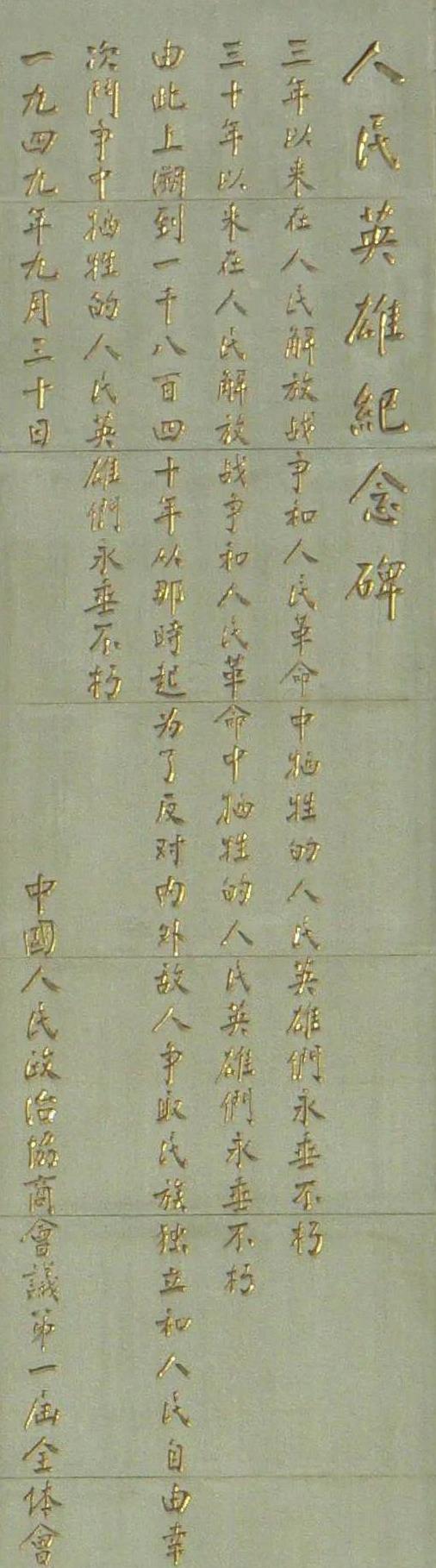 更令人动容的是,碑文中没有提到中国共产党,而是将功劳归于“人民英雄”。