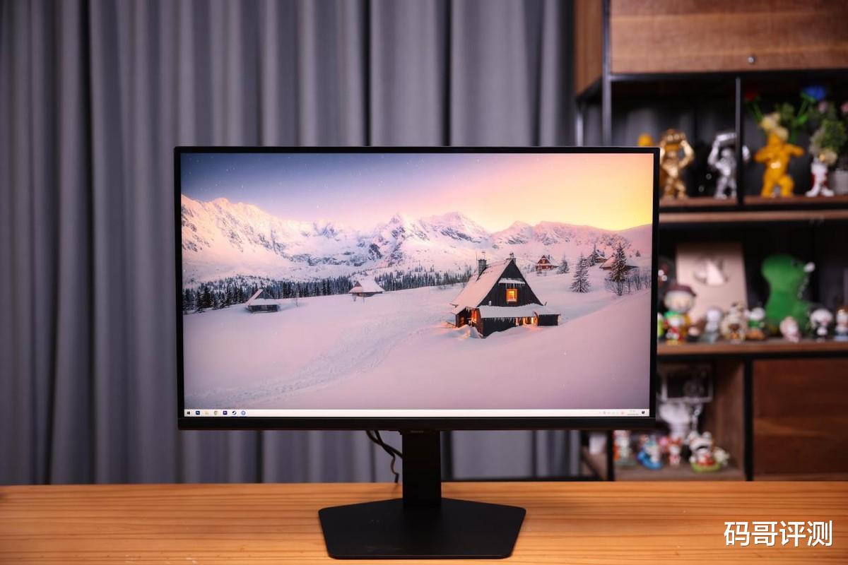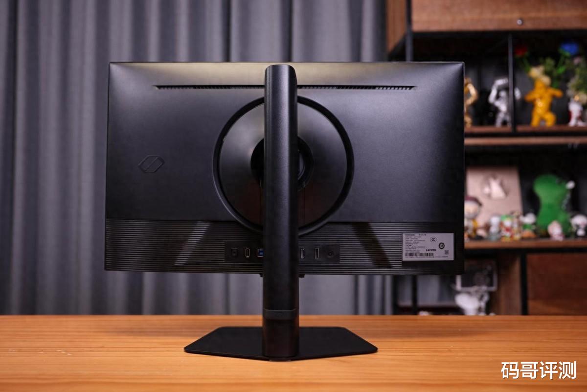 正面是常规的三窄边设计,左右及上边的宽度在0.8cm左右,视觉观感不错。面板采用的是专为高动态场景优化的Fast IPS面板,在传统IPS面板的基础上提升了响应速度和刷新率,但又保持了IPS面板较好的色彩表现以及广视角的特性。