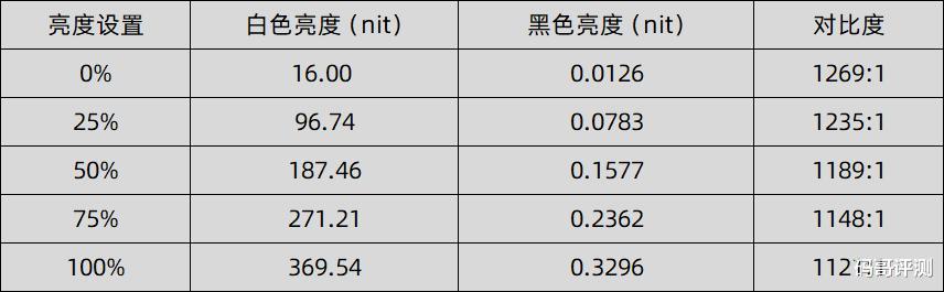屏幕最大亮度接近370nit,对比度大概在1200:1,有着不错的观感基础。