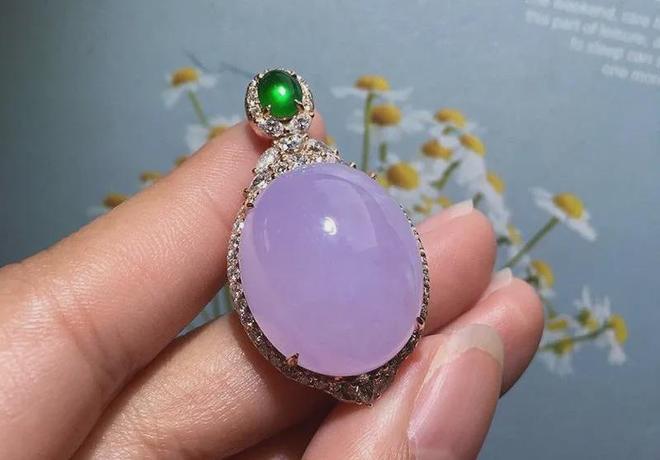 严格来说,紫色翡翠的出产量并不算特别少,比红翡要多,其块体更大,种份以藕粉地居多,通常结晶颗粒较粗,透明度较低,但优质的紫翡就比较少了。