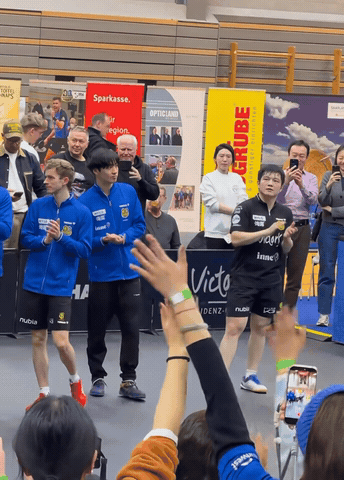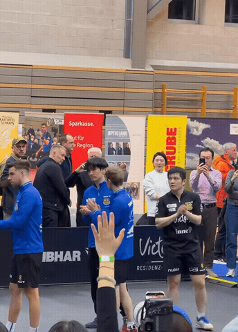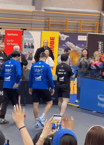 走岀来整理一下下场地还没来得及整理的湿透的沾在身上的球衣,樊振东四面环顾为他而来的球迷,相信他也很感动吧!