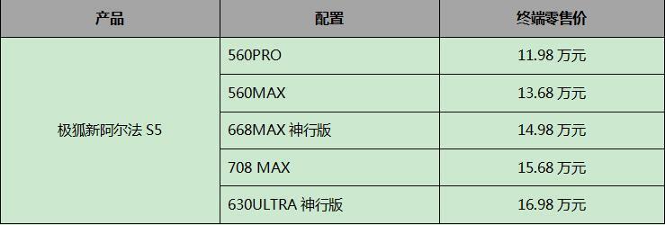 作为纯电动汽车,大家最关心的当然是续航和补能,极狐新阿尔法S5具有三种动力、四种续航可供选择,根据价格从低到高,次、低配两款车型的续航是560km,中配车型的续航是668km,次顶配车型的续航是708km,顶配车型的续航达到了630km。就拿中配车型来说,14.98万就有668km续航,次顶配的售价只有15.68万,续航达到了708km。