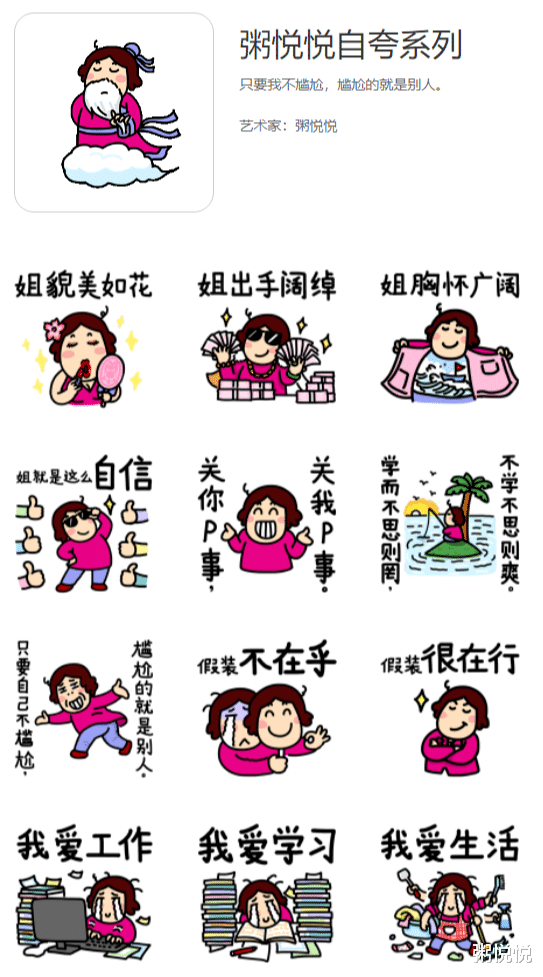 搜索“粥悦悦”,就能下载全部表情。