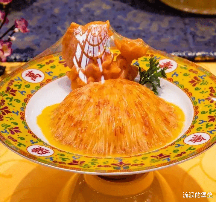 第二道就是黄焖鱼翅,鱼翅的存在大家都明白,营养价值非常高,是深海中的软黄金,尤其是现在提倡环保,这道菜的价值就更不用说了,而且这道菜单单准备上,就需要时间,更别提再去做了,简直是奢侈品,只可看不可尝,据说可鲜了!