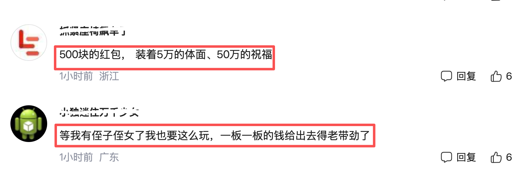 网友评论一针见血:“500块的红包,装出了5万的体面,甚至有50万的祝福。”