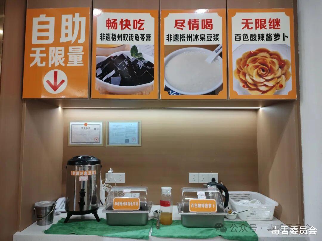 里面有:非遗梧州纸包鸡、五指毛桃土鸡汤、贺州茶油炒土猪肉,还有非遗小吃自助。入座后看过现场菜单,发现也只有那道梧州纸包鸡有点意思了,于是就点个套餐,顺便也试试其它出品水平吧。下单后,喝了一口店家的山楂茶叶,居然有点特别。然后去试试几种自助的非遗小吃,那出品都有点超出预期了,尤其是那道百色酸辣酱萝卜和梧州冰泉豆浆,引得我连连续加!
