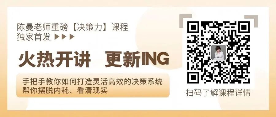 系统的决策观如何拥有?如何让自己身段灵活、敢于行动?加入陈曼老师正在热卖的《决策力课》,助你掌握婚姻主动权!