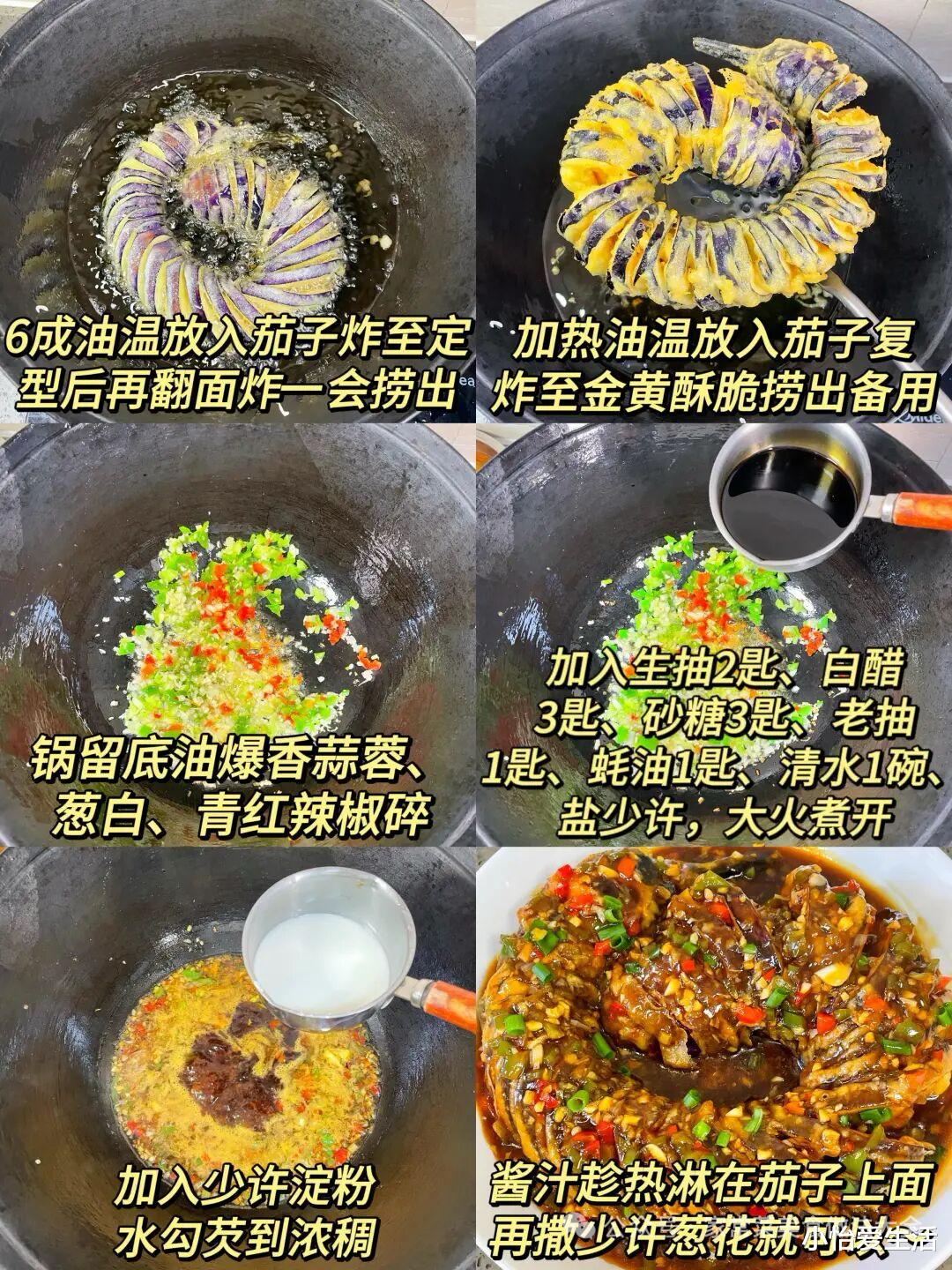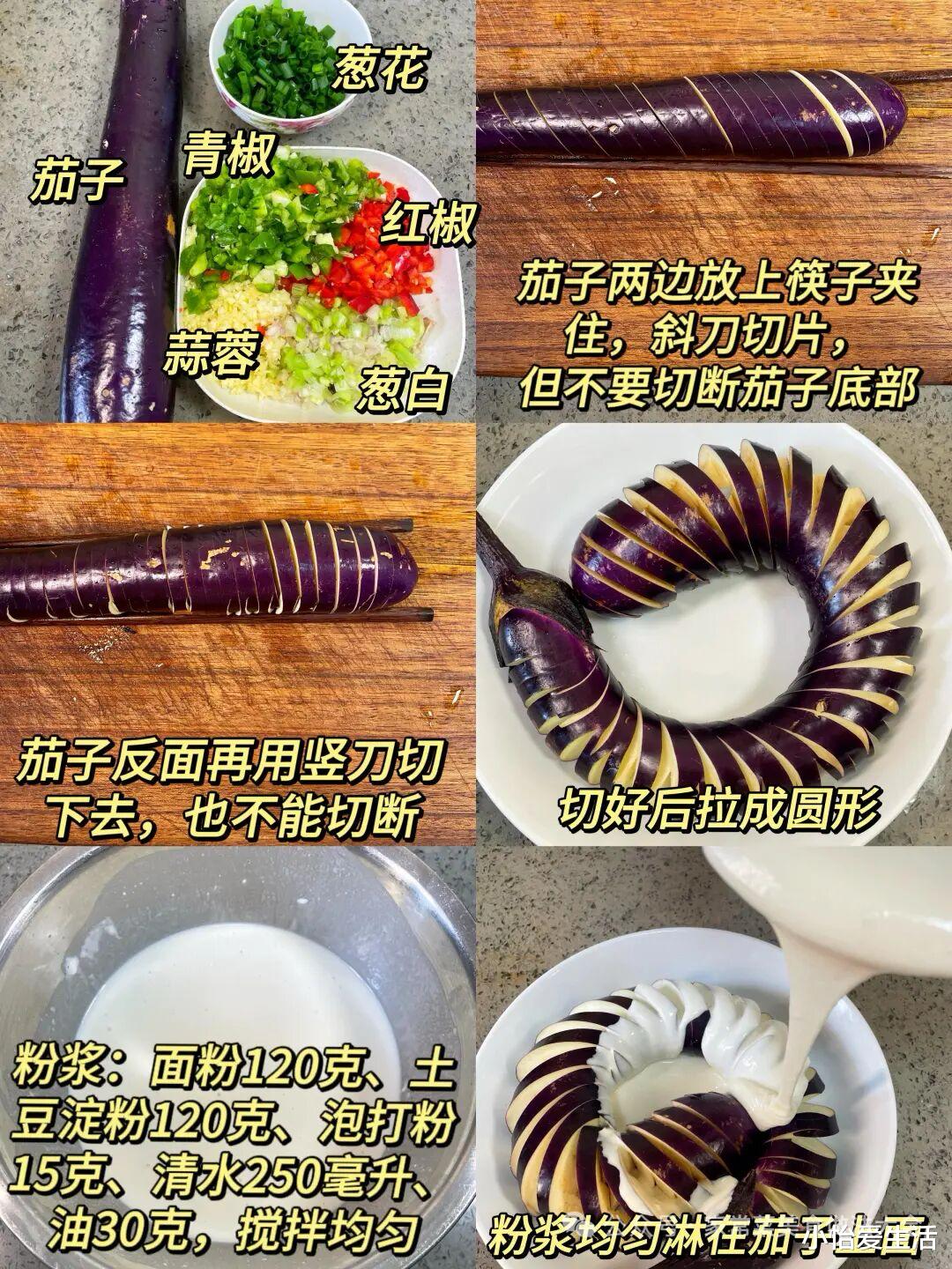• 炸前擦干茄子表面水分,减少吸油量。