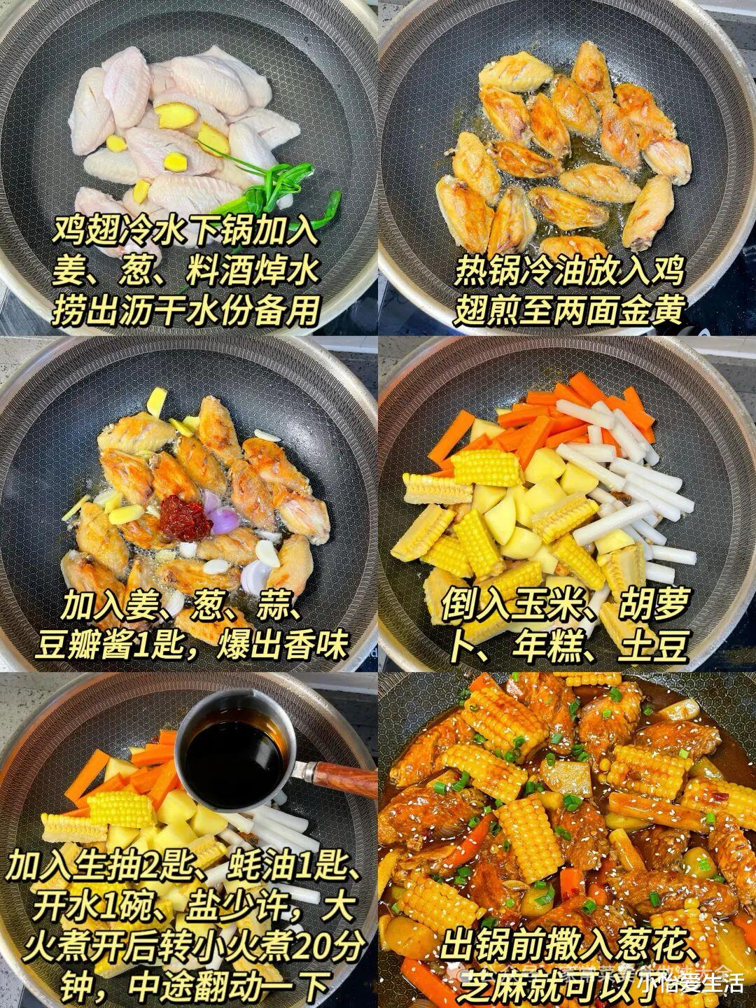 • 煎鸡翅先大火锁汁,再小火煎至金黄。